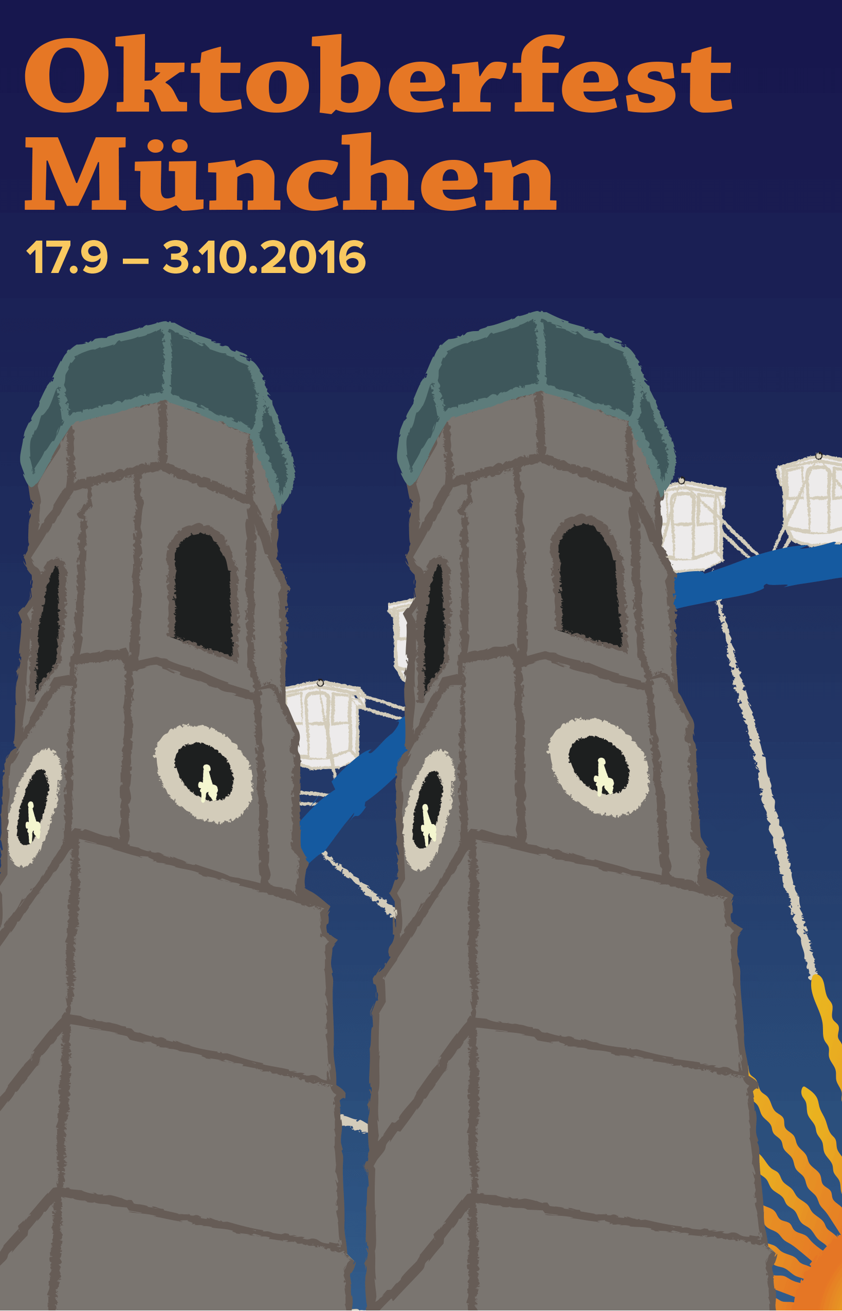 This poster, targeting a European (German) audience, was designed to help advertise the Oktoberfest festival that takes place annually in Munich, Germany.